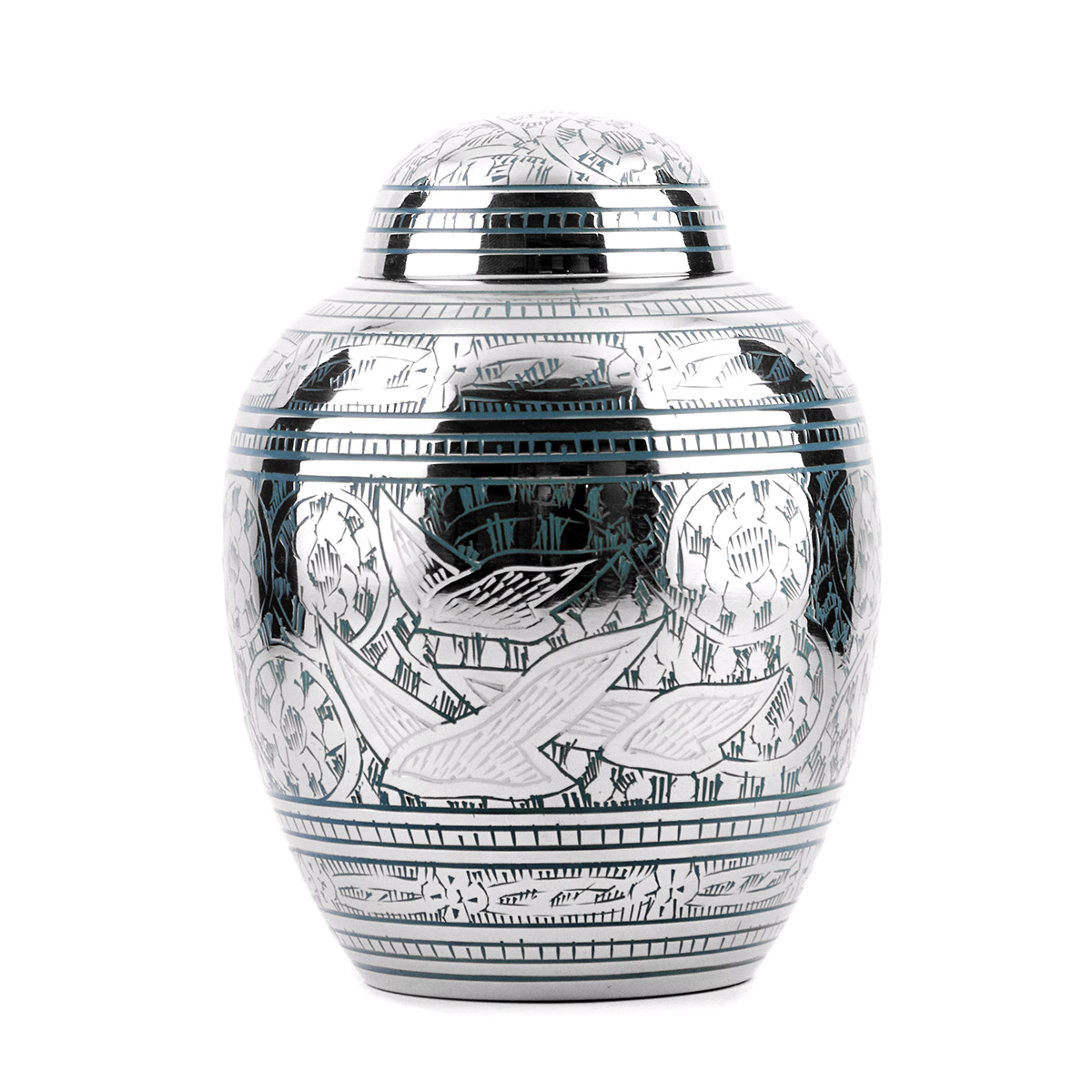 JorVet introduces an expanded range of designer style pet urns to offer veterinarian clients a wider range of choices for cremation urns. All urns are a heavy-duty brass material with a threaded screw on lid for security. Contains Dove Inlays 5.7 x 3.9 40 up to 35lbs